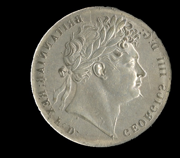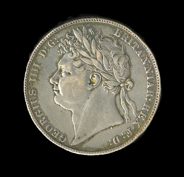 Great Britain. George IV (1820-1830). Halfcrown, (1820-1823). Full Obverse Brockage. Laureate head l. Cf.S.3807,3808; KM 676, 688. Pale gray with tungsten blue peripheral hues. Good Very Fine.