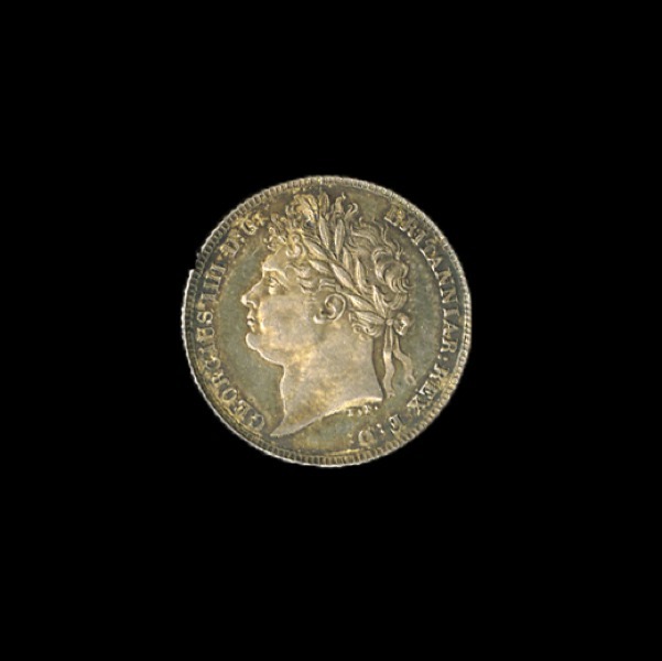 Great Britain. George IV (1820-1830). 6 Pence, (1821-1826). Full Obverse Brockage. Laureate head l. CF.S.3813, 3814; KM 678, 691. Lustrous, pale slate-gray with iridescent hues and prooflike surfaces. Choice Uncirculated.