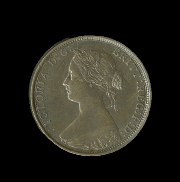 Great Britain. Victoria (1837-1901). Halfpenny, (1860-1874). Full Obverse Brockage. Laureate, young bust l. S.3956. This might also be Nova Scotia, New Brunswick or Newfoundland which shared a common obverse with the British halfpennies of 1860-1874. Deep olive-brown. Extremely Fine-About Uncirculated. A similar brockage in Extremely Fine brought $470 (with BP) in a Heritage weekly internet auction January 23, 2014.