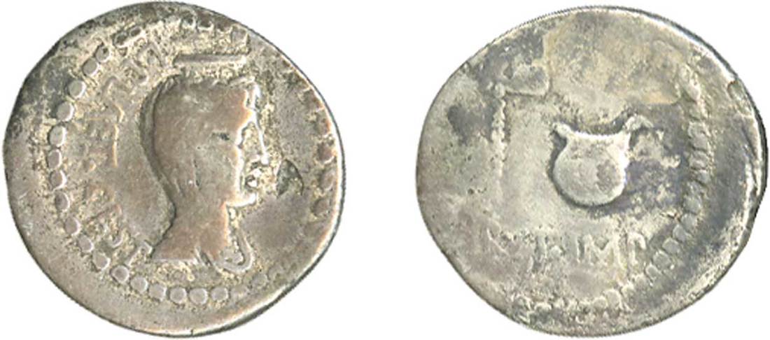Roman Imperatorial. Brutus. Denarius, late summer-autumn 42 BC. Military mint travelling with Brutus and Cassius in western Asia Minor or northern Greece. L. Plaetorius Cestianus, moneyer. 3.36 gms. L. PLAET.CEST, veiled and draped female head right wearing polos atop her head, rev. BRVT.IMP below, Sacrificial ax and simpulum. Crawford 508/2, Syd.1300, RSC 2. The last issue struck in the name of Brutus before the Battle of Philippi. Banker's mark right obverse field. Fine.