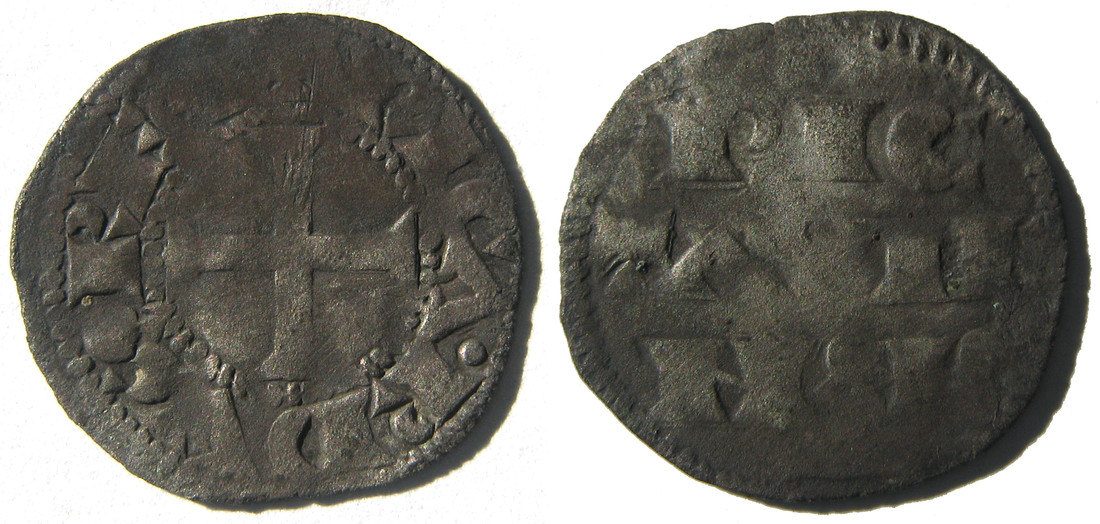 Anglo-Gallic. Richard, "Coeur de Lion" (King of England, 1189-1199).Poitou. Denier. 0.93 gms. Cross pattée within inner circle: +RIC? (small pellet) RDVco, Rex, rev. PIC-T?VIE-NSIS. Galata 340A-(3/b), Elias 8var, S.8008, B.424var, Poey d'Avant 2505var, Dup.920var. Extremely rare variety. Fine.