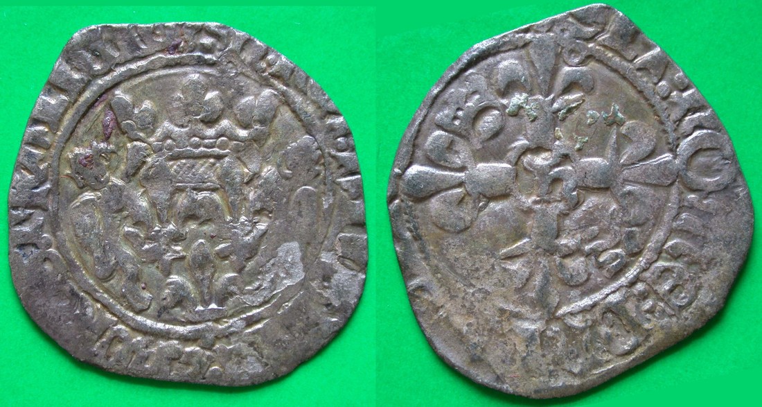 Anglo-Gallic. Henry V (1413-1422). Florette. Fourth issue, 16 June 1420. Rouen. 2.23 gms. Crown over three fleur-de-lis supported by leopard rampant either side, rev. Croix fleur-de-lisée, crown in first angle, leopard in 4th angle. Annulet under first letters of legends on obverse and reverse. Galata 365B-(2/a), Elias 249a, S.8159, Dup.435C, Poey d'Avant 3170, Ciani 591. Attractive tone with soft gold highlights. Good Very Fine.