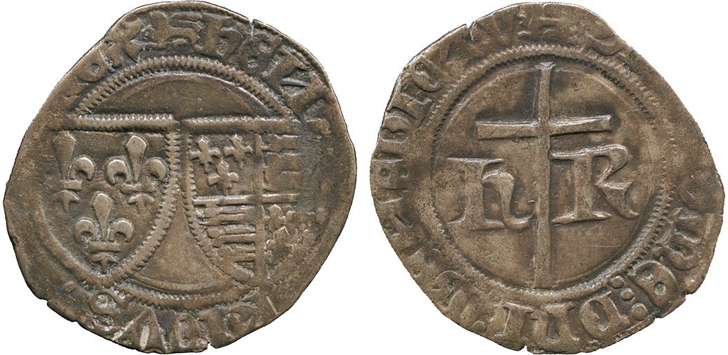 Anglo-Gallic. Henry VI (as King of France, 1422-1450). Petit Blanc. Rouen. 1.53 gms. Shields of France and England side by side; (leopard) hEN (the "N" reverted)-RICVS.-REX, rev. Latin cross dividing "h" and "R" within inner circle, leopard at beginning of legend. Galata 415, Elias 297, S.8167, Poey d'Avant 3211, Dup.446, Ciani 603. Toned. Very Fine.