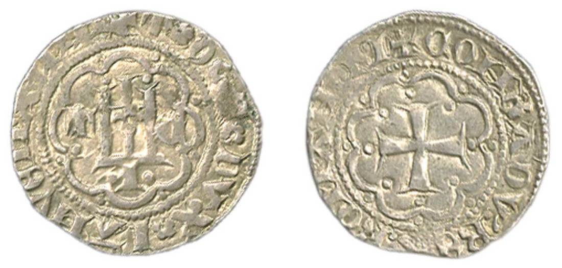 Italian States. Genova. Tommaso di Campofregoso, Doge XIX (1415-1421). Grosso. 1.87 gms. Castle, T-C, within frame of 8 arcs, pellets at each arc terminus and outer angles, rev. Croce potente within frame of 8 arcs, pellet at each terminus and in outer angles. Lun.65v, Biaggi 893. About Extremely Fine.