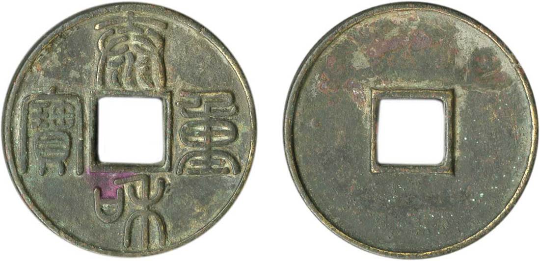 China. Jin Dynasty. Tai He (1204-1209). AE 10 Cash. 45.3 mm. 19.41 gms. Seal script, thin characters. Hartill 18.63. Minor flan crack. Sea-green patina. Attractive example of this large size Jurchen coin. Est.