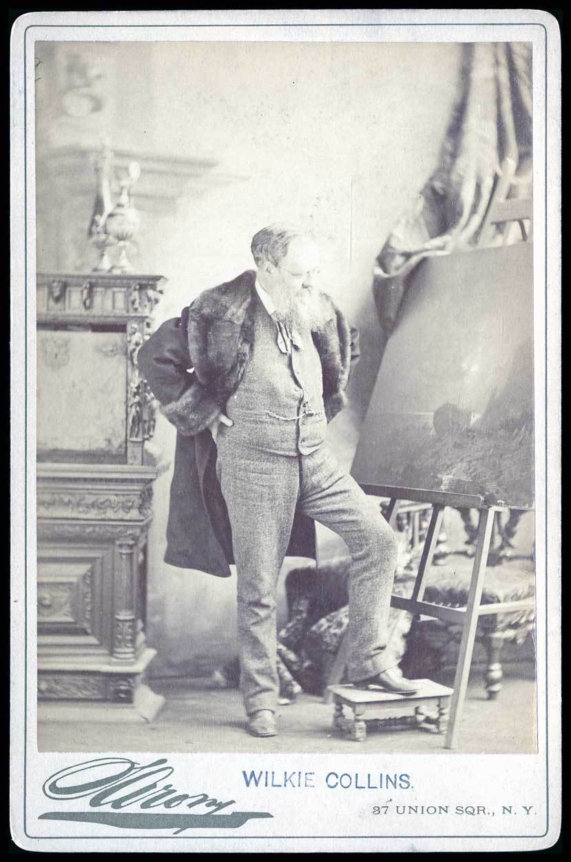 Collins,Wilkie (1824-1889). A friend and travelling companion of Charles Dickens, and the first writer of full-length crime stories. Photograph. Cabinet Card by Sarony. 4 ¼"x 6 ½." Full length pose of Wilkie Collins gazing at a painting.