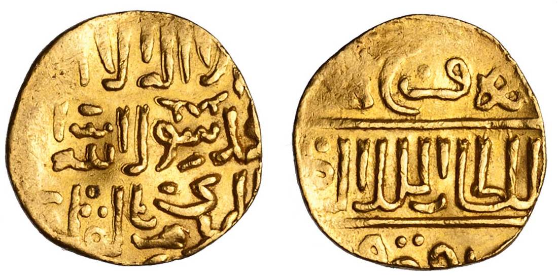 Egypt and Syria. Burji Mamluk. Faraj (AH 801-808, 809-815/1399-1405, 1406-1412 AD). Gold Bunduqi, Dimashq, AH 80x. 3.54 gms. Three-line legends both sides, royal protocol divided by horizontal lines. Balog 628, A-978. Minor weak areas in peripheries. Near Extremely Fine.