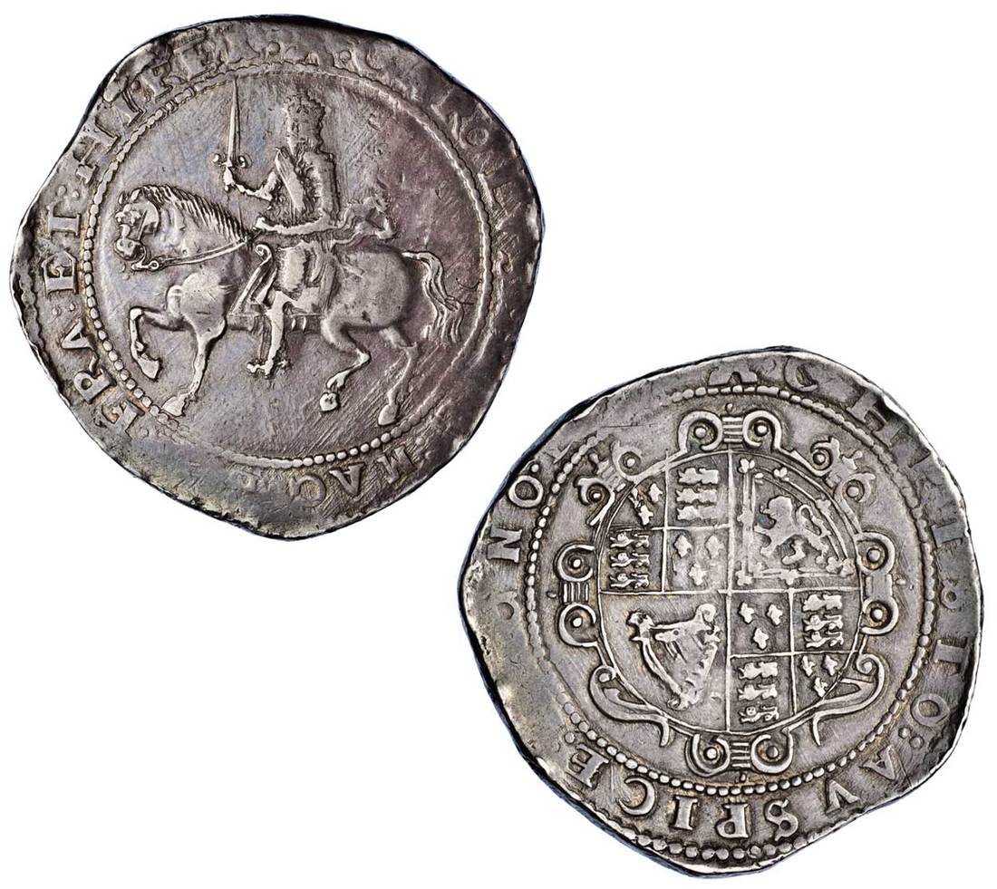 lot 197 was erroneously identified as S.2758, it is S.3062. The correct attribution is "Crown, mm castle (1645). Exeter mint. S. 3062, KM 334.4." The estimate has been amended to $600 to $800.
