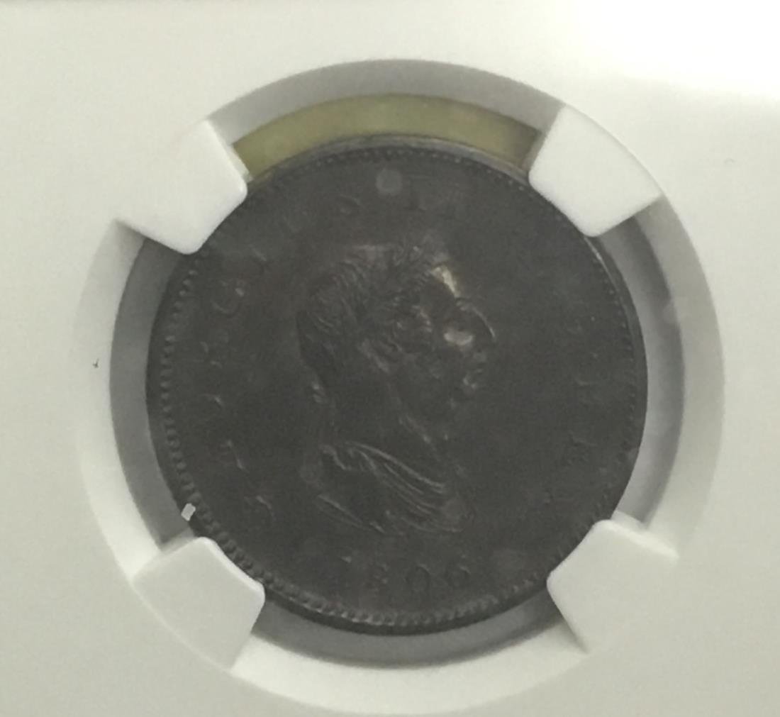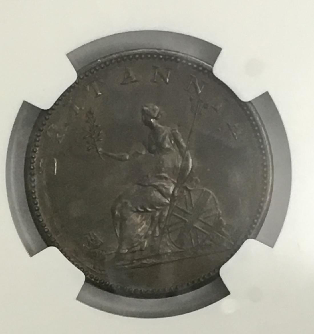 Great Britain. George III (1760-1820). Halfpenny, 1806. Soho. Three berries. Laureate, draped bust right, rev. Britannia seated left. S.3781, KM 662. Deep birch brown. NGC MS 63 BN.