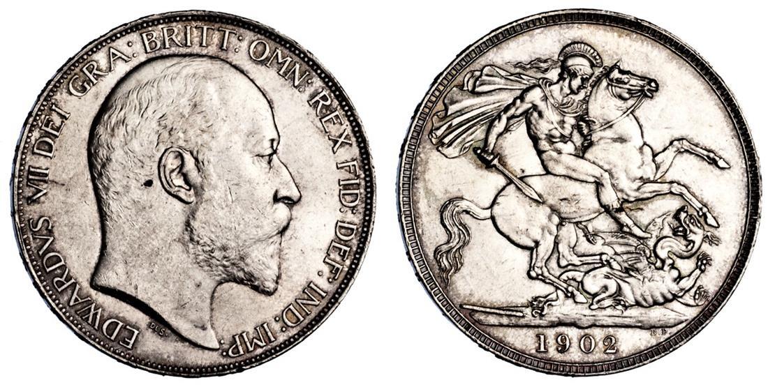 Great Britain. Edward VII (1901-1910). Crown, 1902. Bare head right, rev. St. George. S.3978, KM 803. Very light bagmarks. Decent lustre. Uncirculated.