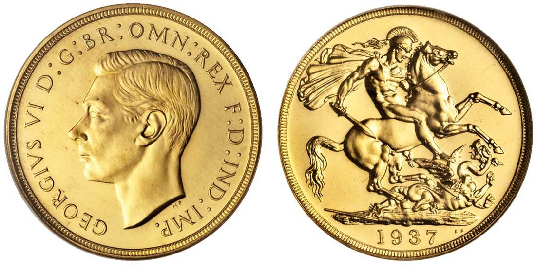 Great Britain. George VI (1936-1952). Two Pounds, 1937. Bare head left, rev. St. George. S.4075, KM 860. 5,001 minted. NGC PF 65.