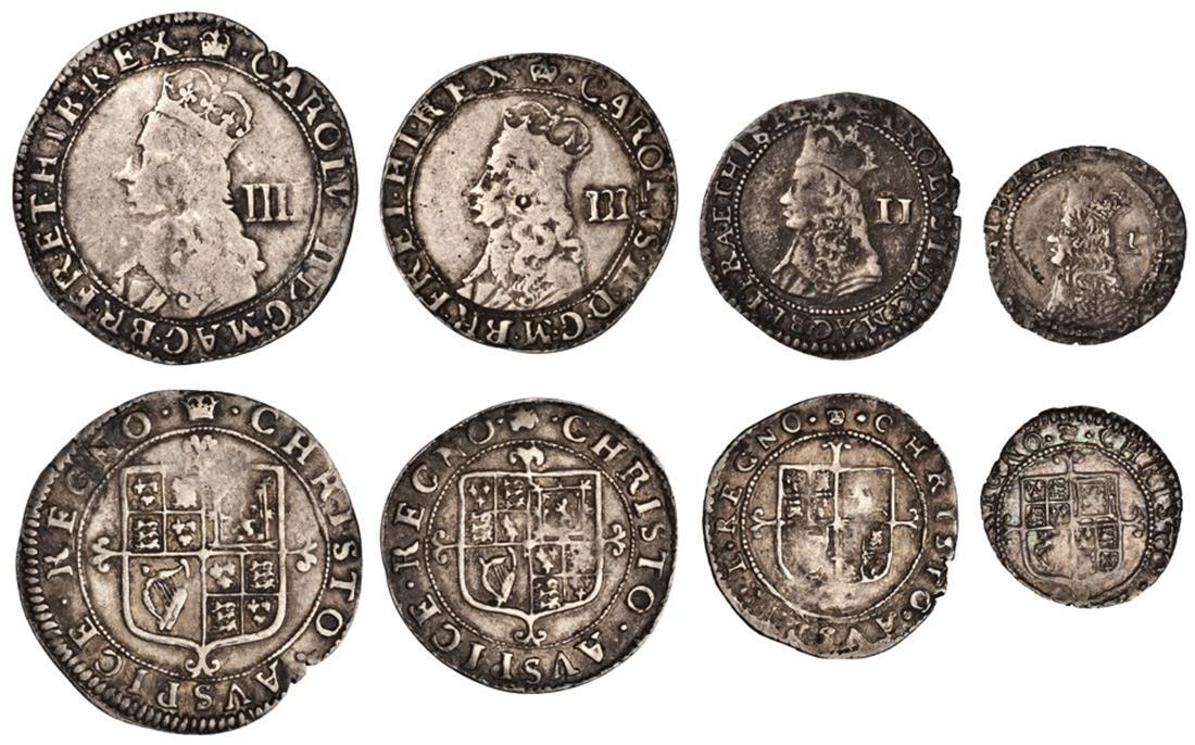 England. Charles II (1660-1685). Third issue, Hammered Set. Penny, 2, 3 and 4 Pence, undated (1660-1662). Inner circles. Crowned bust left, mark of value behind, rev. Shield with Arms on cross fourchée. S.3324-3327. Toned About Very Fine-Very Fine. (4)
