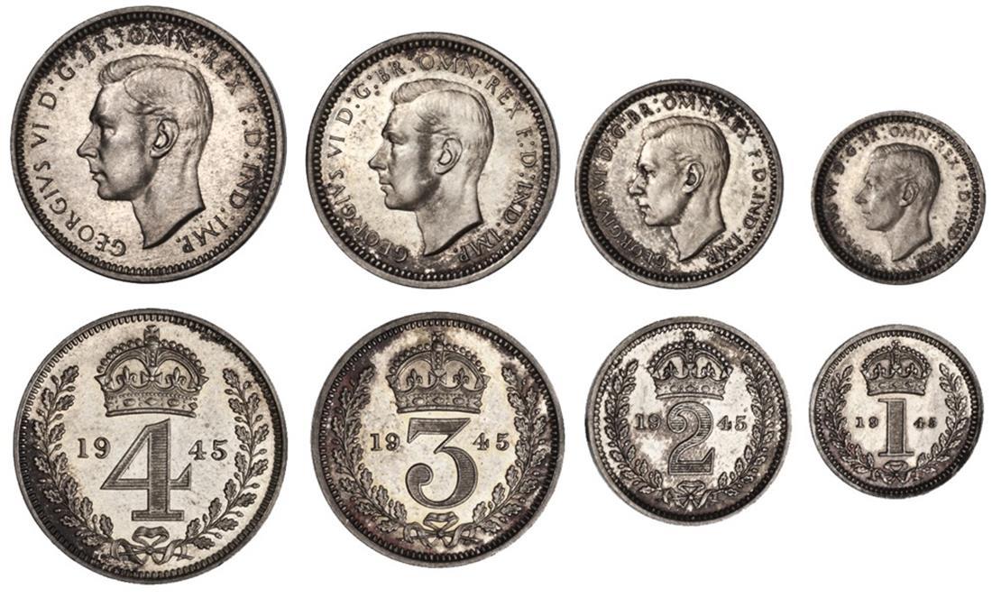 Great Britain. George VI (1936-1952). Maundy Set, 1945. Silver Penny, 2, 3 and 4 Pence. Bare head left. S.4086, KM MDS 204. Prooflike Brilliant Uncirculated. (Set of 4)