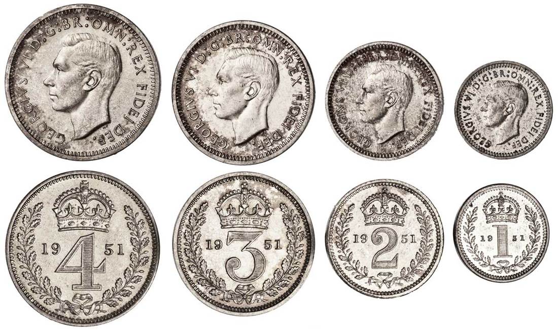 Great Britain. George VI (1936-1952). Maundy Set, 1951. Silver Penny, 2, 3 and 4 Pence. Bare head left. S.4096, KM MDS210. Choice Prooflike Brilliant Uncirculated. (Set of 4)