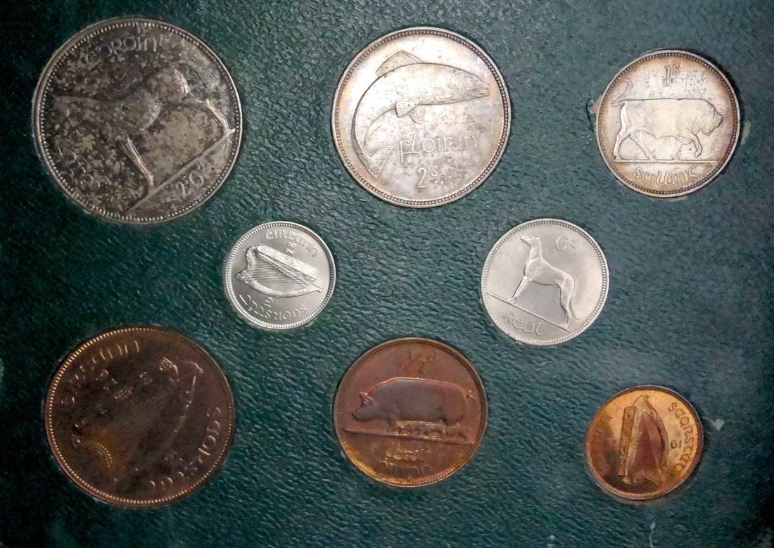 Ireland. Saorstát Éireann. Eight-piece Proof Set, 1928. Farthing to Halfcrown - first issues of the Irish Free State. S.PS1, KM PS1. 6,001 sets made. In original emerald-green case (some scuffing). Attractively toned. Brilliant Proof. (8-piece set)