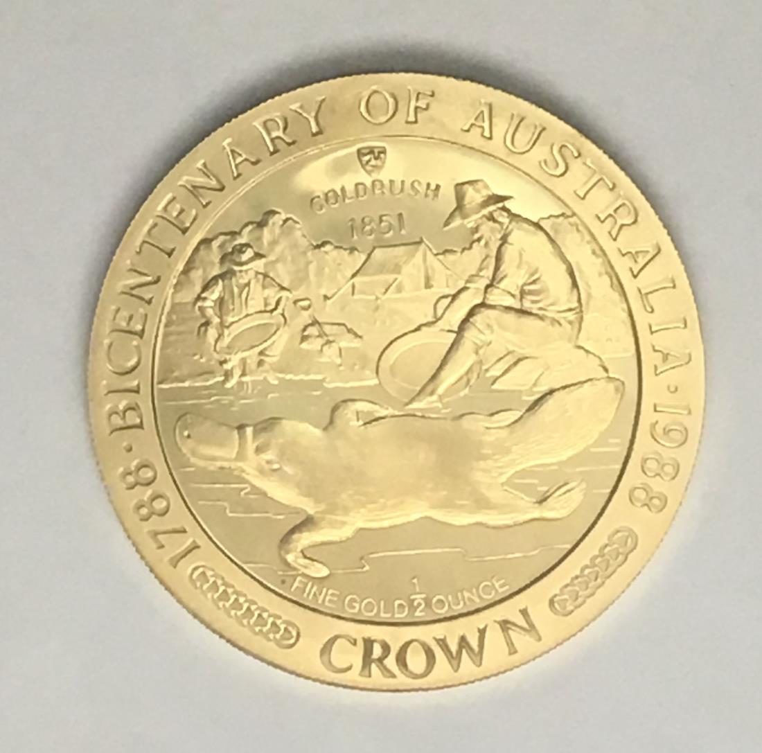 Isle of Man. Elizabeth II (1952-). 1988 Bicentennial of Australia. Halfcrown. Elizabeth II. Platypus. KM 288. 1/2 Ounce Gold. Gem Proof. Ultra cameo. In a custom plastic capsule. Pristine.