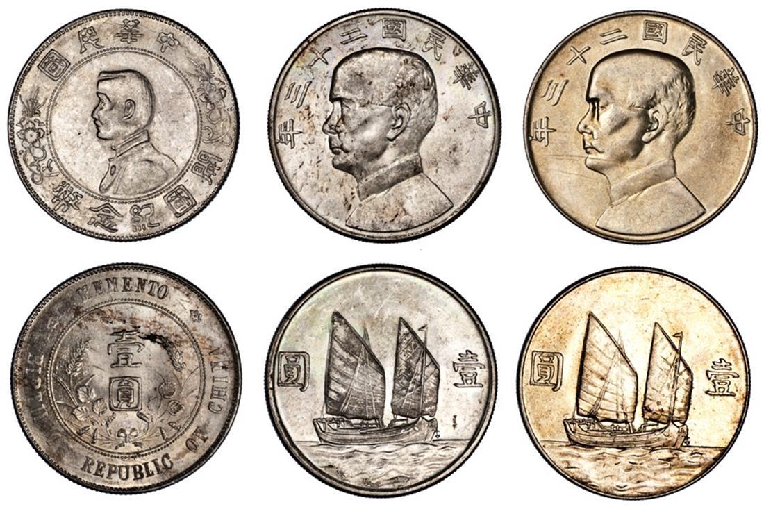 China. Republic. Trio of Silver Dollars. (1927) Memento type and Year 23 (1934) Junk Dollars (2). Y.318a.2, 345. Uncirculated. (3)