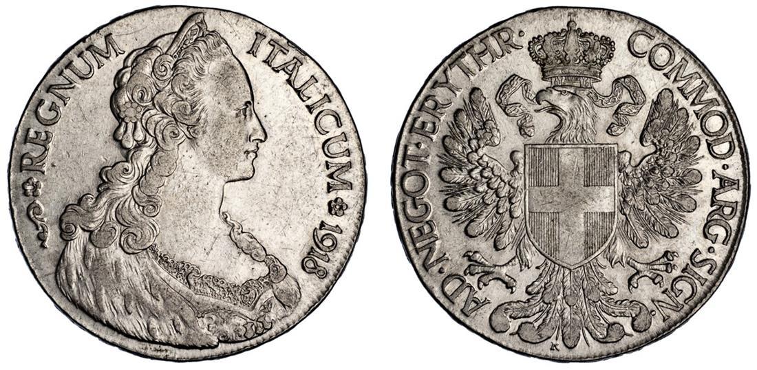 Eritrea. Vittorio Emanuele III (1900-1936). Trade Tallero, 1918 R. Emulating Maria Theresa coinage. Draped female bust right wearing tiara, rev. Arms on crowned eagle. KM 5. Some minor hairlines. About Extremely Fine.