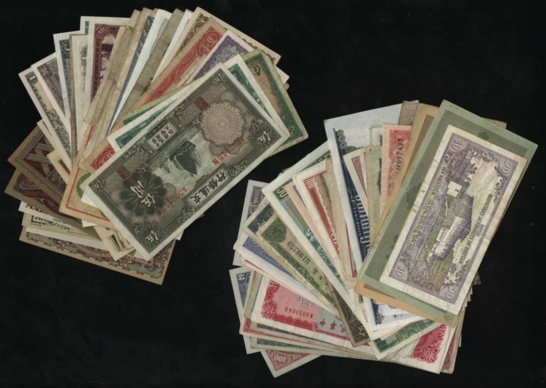 Assortment of World Paper Money Mostly Asian, some South America and Europe -- small grouping of Chinese, Chile notes, German and Austrian Notgeld, a few MPCs. VG-EF, a few better. [Appx. 110]