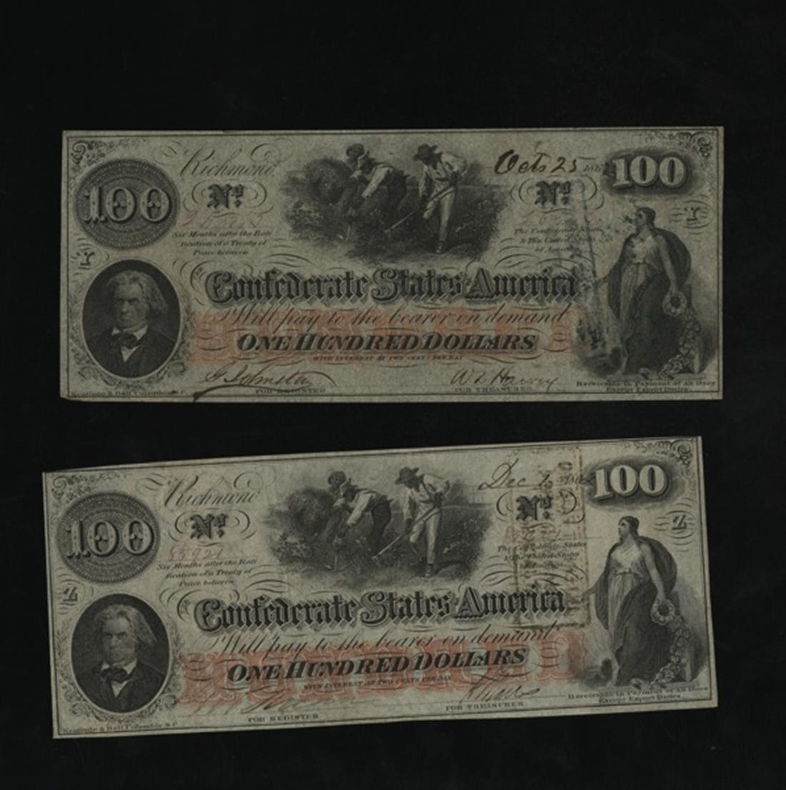 CSA. A Nice Pair of Well-Framed T-41 1862 $100 Notes. Both with full margins all around. VF-EF and Uncirculated. [2]