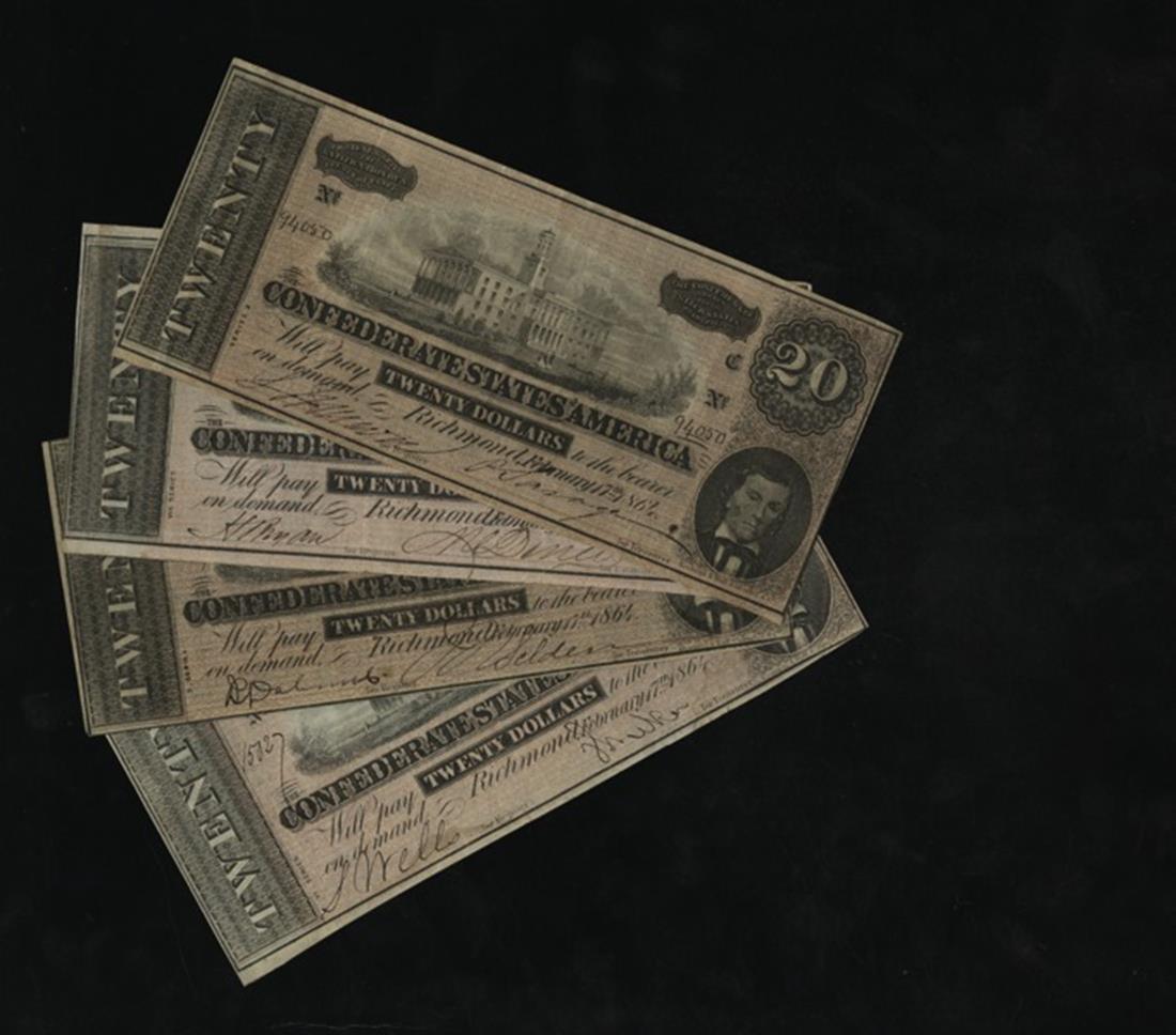 CSA. Quartet of $20 1864 T-67 Notes. Capitol, Nashville. Alexander Stephens. VF to AU. All with full borders. [4]