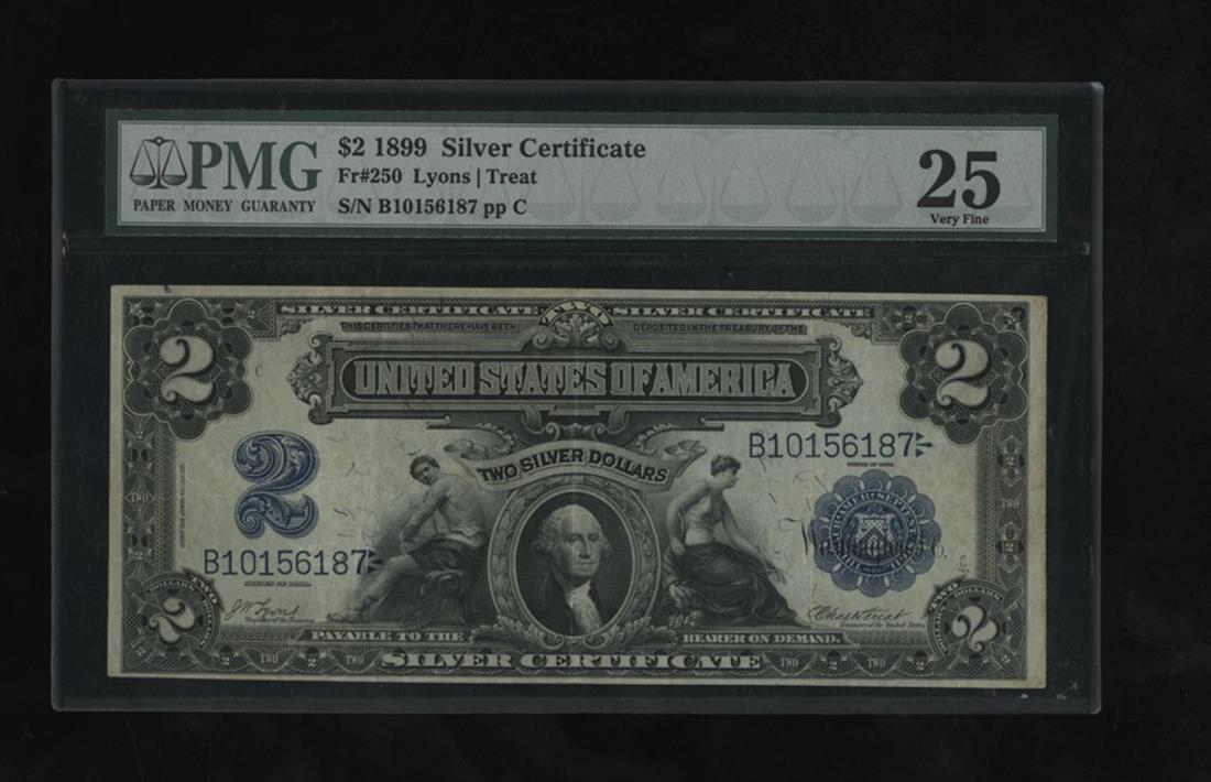 Fr.250. $2. Silver Certificate. 1899. Washington flanked by allegorical man and woman. No. B10156187 C. PMG. Very Fine 25.