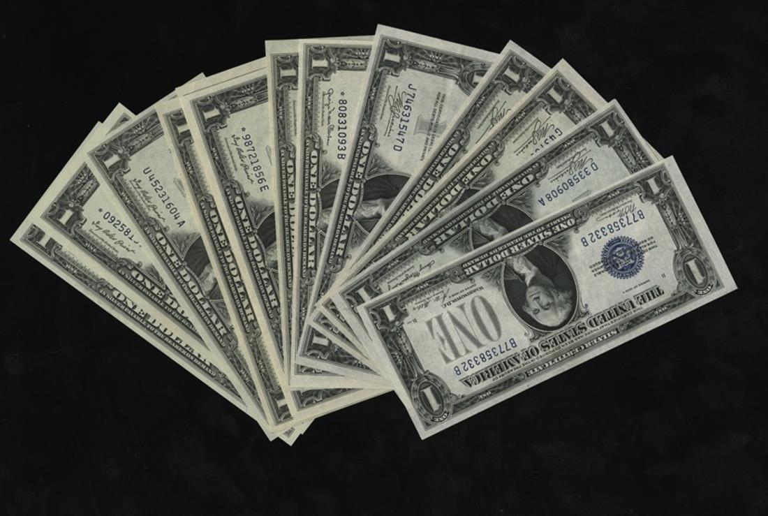 A Nice Run of Small Size $1 Silver Certificates. 1928A Fr.1601; 1935 Fr.1615; 1935A Fr.1608; 1935A* Fr.1608*; 1935B Fr.1611; 1935D* Fr.1613W*; 1935E Fr.1614; 1935E* Fr.1614*; 1935G Fr.1617; 1935H* Fr.1618*; 1957 Fr.1619; 1957* Fr.1619*; 1957B* Fr.1621*. Choice to Gem Uncirculated . [13]