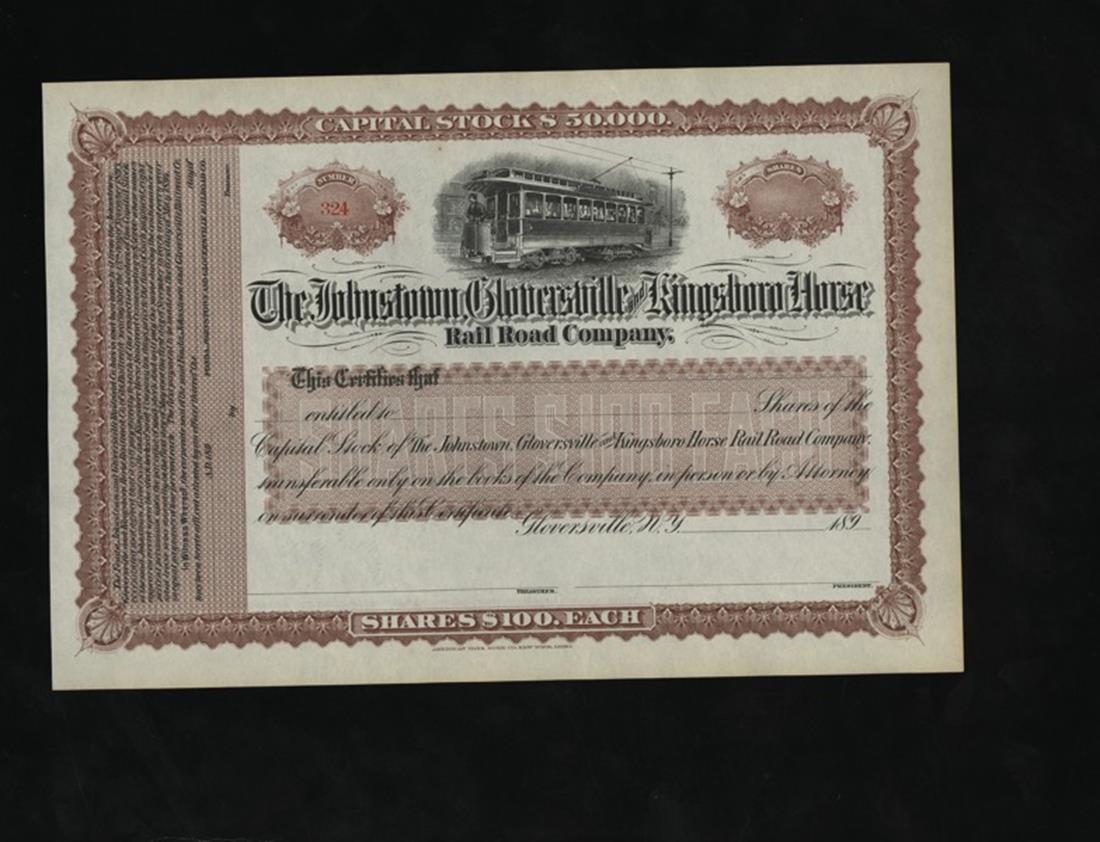 Northeastern Unissued Railroad Assortment. Johnstown, Gloversville & Kingsboro Horse Railroad; New York & Fort Lee RR; Erie and the North East RR, and more. All with vignettes. Mostly EF. Must be seen. Sold as is, no returns. [12]