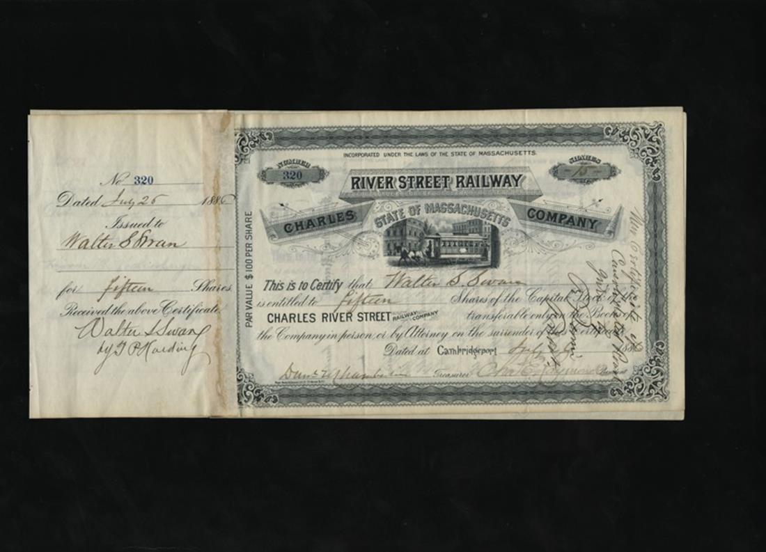 Pair of Nice Street Railways. Middletown Street Railway Company (CT) 1905 IU; Charles River Street Railway (MA) 1880 IC. Both VF to VF+. [2]