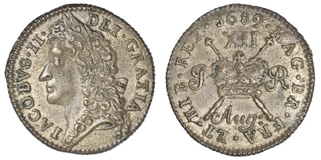 Ireland. James II (1685-1691). Civil War. "Gunmoney" Shilling, 1689. Aug: Laureate head left, rev. Crown over crossed scepters. S.6581C. Extremely Fine.