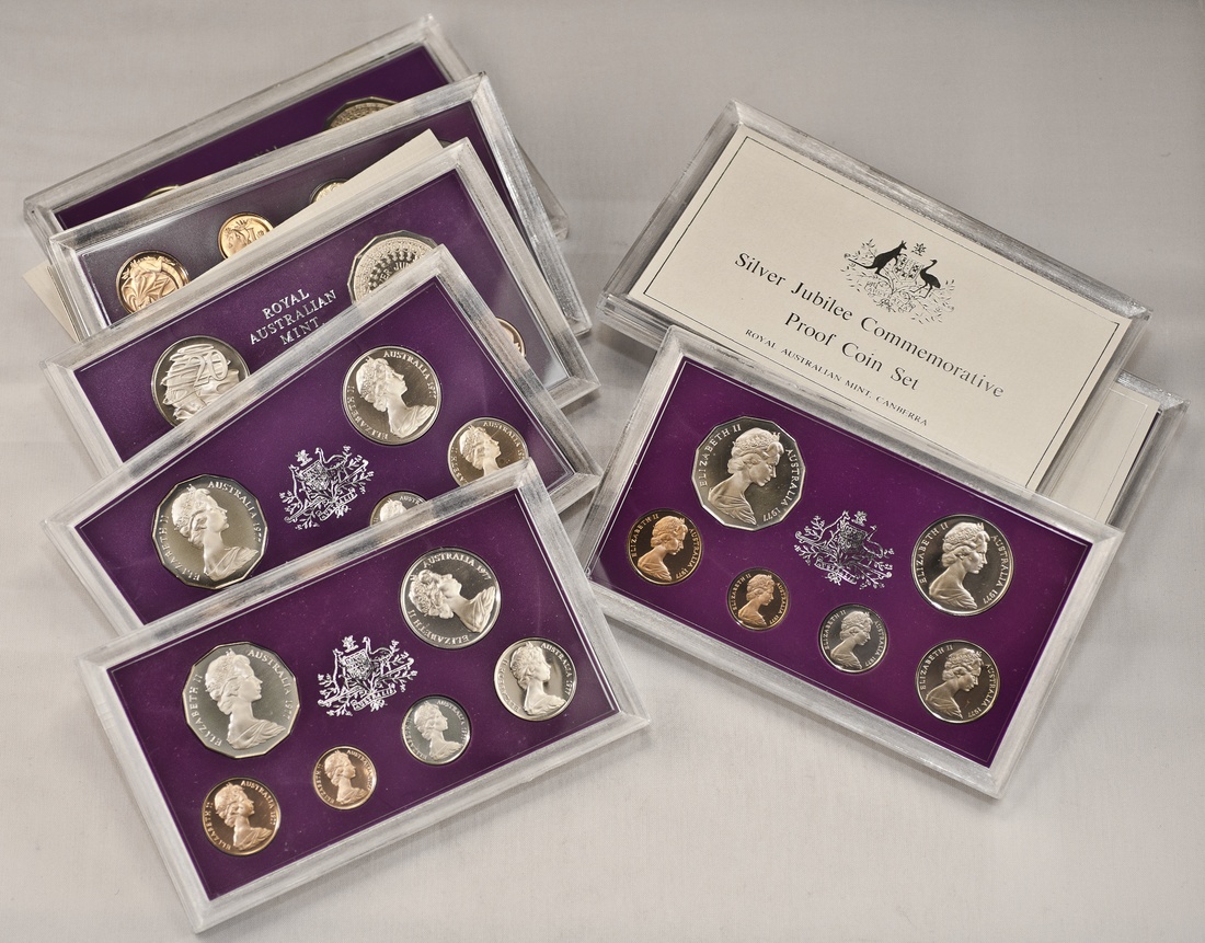 Australia. Nonet of 1977 Jubilee six-piece Proof Sets. One Cent-50 Cents. KM PS39. In original RAM cases. Choice Brilliant Proof. (9 sets)