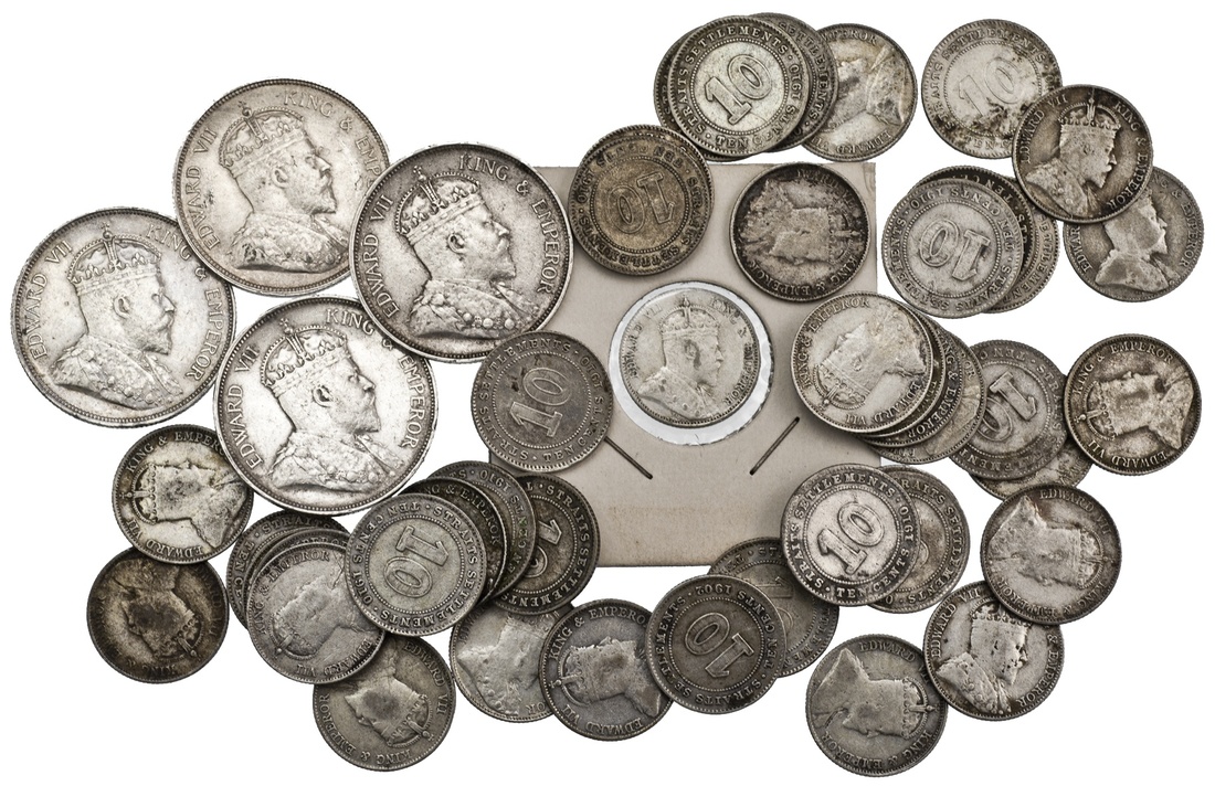 British North Borneo. Lot of 25 Cents, 1929 H. Heaton. Arms supported by Dayak warriors. KM 6. A few with light porosity. About Fine-Very Fine. (40)