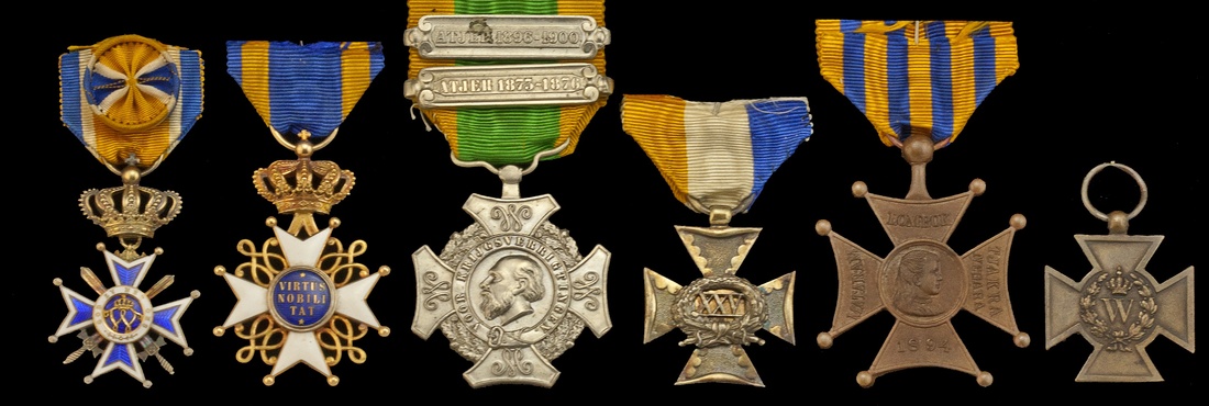 Housed in the original custom purple plush-lined, japanned case. Neatly packed in the storage below the medals tray is a miniature badge with a photo of the recipient, ribbon bar, replacement ribbons, a tiny "Z" stickpin, a small banner from the Grotte de Merveilleuse, Dinant, and price sheets (late 19th-20th Century) from the firm of J.M.J. Van Wielik, supplier of Medals and Decorations. All Extremely Fine.