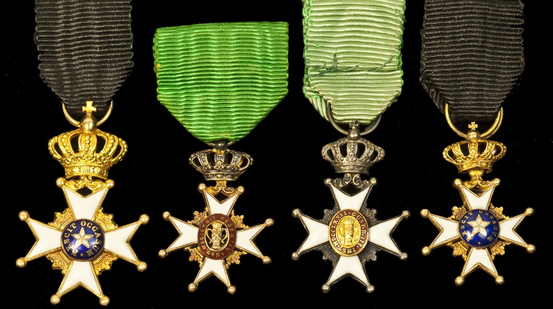 Sweden. Quartet of Miniatures: Order of the Northern Star (2). Gold, gilt and enamels; Order of Vasa (2). Silver, gilt and enamels. All on ribbons. Extremely Fine. (4)