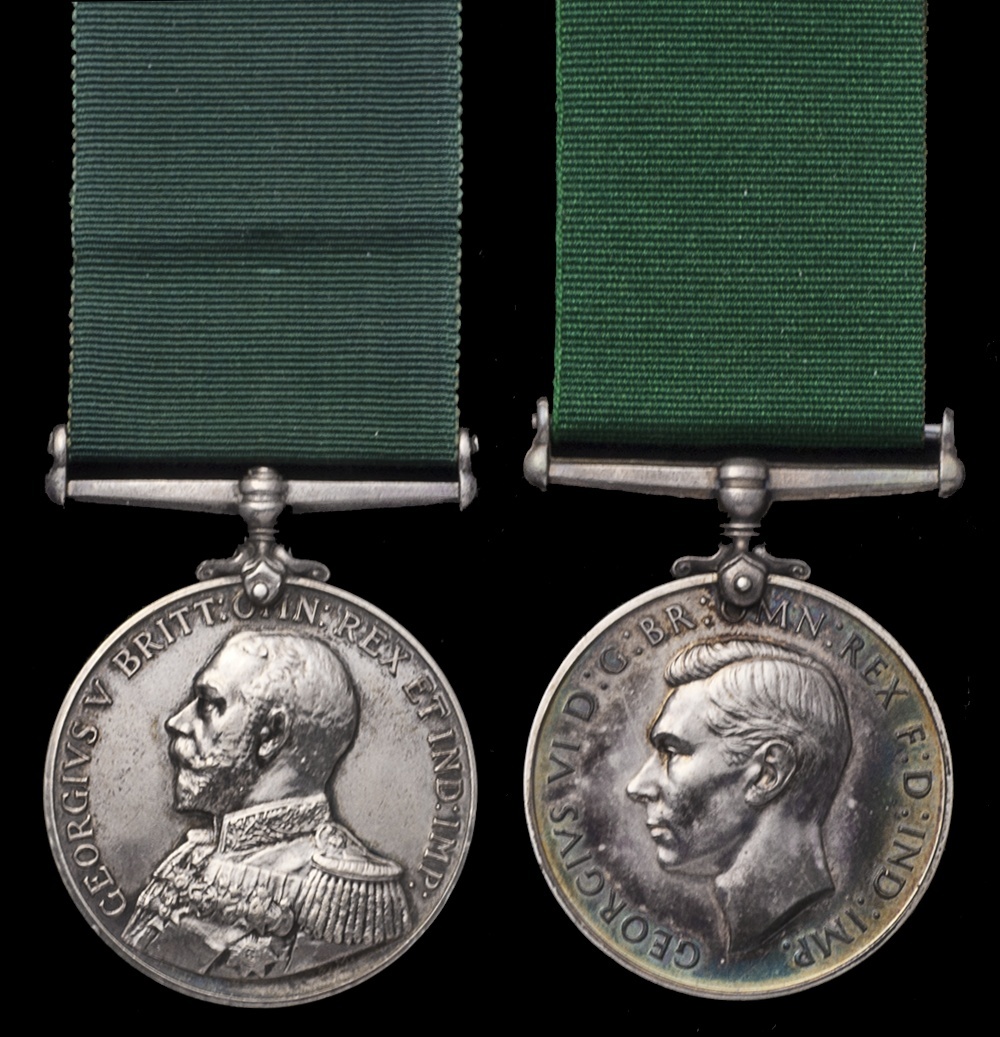Great Britain. Royal Navy Volunteer Reserve Long Service and Good Conduct Medals. George V (D. 3880. J.A. CROYLE, SEA.1CL. R.N.R.). Extremely Fine; and George VI (10700 B. G.A, FISH, SMN. R.N.R.). About Uncirculated. Both on ribbons. (2)