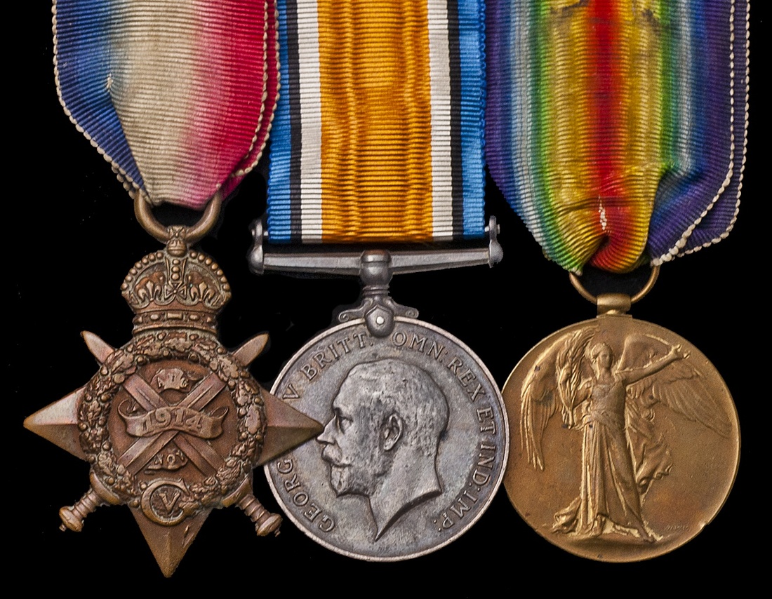 Great Britain WW I Trio to Corporal J. Watkins, Rifle Brigade. 1914 Star (3997 CPL. J. WATKINS. RIF. BRIG.), British War and Victory Medals (3997 CPL. J. WATKINS. RIF. BRIG.). On ribbons. Very Fine-About Extremely Fine. (3)
