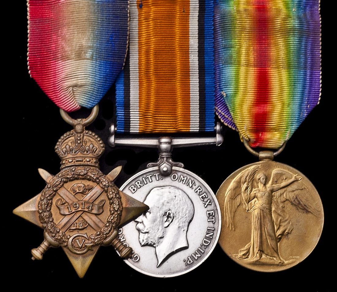 Great Britain. WW I Trio to Able Seaman W. Pegram, Royal Navy Volunteer Reserve. 1914-1915 Star (L.9 / 2665, W.C. PEGRAM, A.B. R.N.V.R. COLLINGWOOD BTTN. R.N.D.), British War and Victory Medals (L.9-2665 W.C. PEGRAM A.B. R.N.V.R. On ribbons. Extremely Fine. (3)