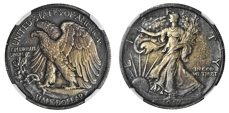 1917 Walking Liberty Half Dollar. UNC DETAILS. Environmental damage.