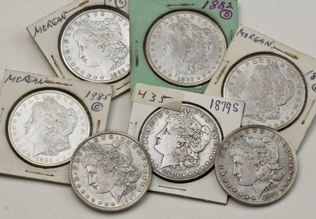 Uncirculated Morgan Dollar Grouping. 1879-S; 1880-S; 1882-O; 1884-O(2 pcs.); 1885-O; 1887. [7]