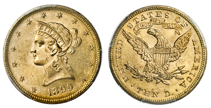 1899 Liberty $10. PCGS MS64. Boldly struck with a great deal of original mint luster.
