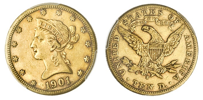 1901-S Liberty $10. PCGS AU50.