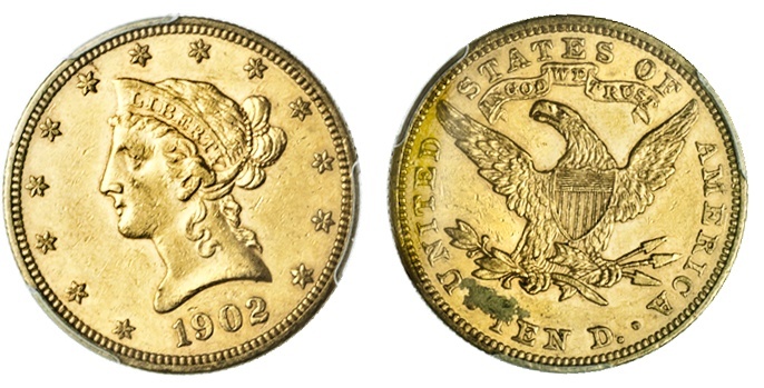 1902 Liberty $10. PCGS Genuine. Residue - AU Details