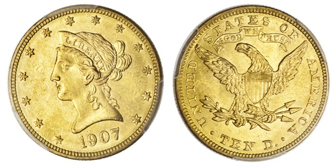 1907 Liberty $10. PCGS MS62.