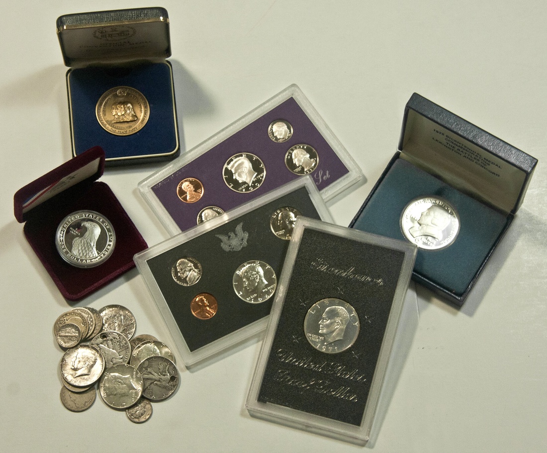 U. S. Proof Sets, Silver Coins and More. 1969, 1991, 1992 Proof Sets; Four 1972 Ike Dollars (one holder is cracked);1983-S Proof Silver Dollar; $3.40 face value 90% silver coins. Includes Some Barber coinage. Two of the Walkling Liberty Half Dollars have holes. [24]