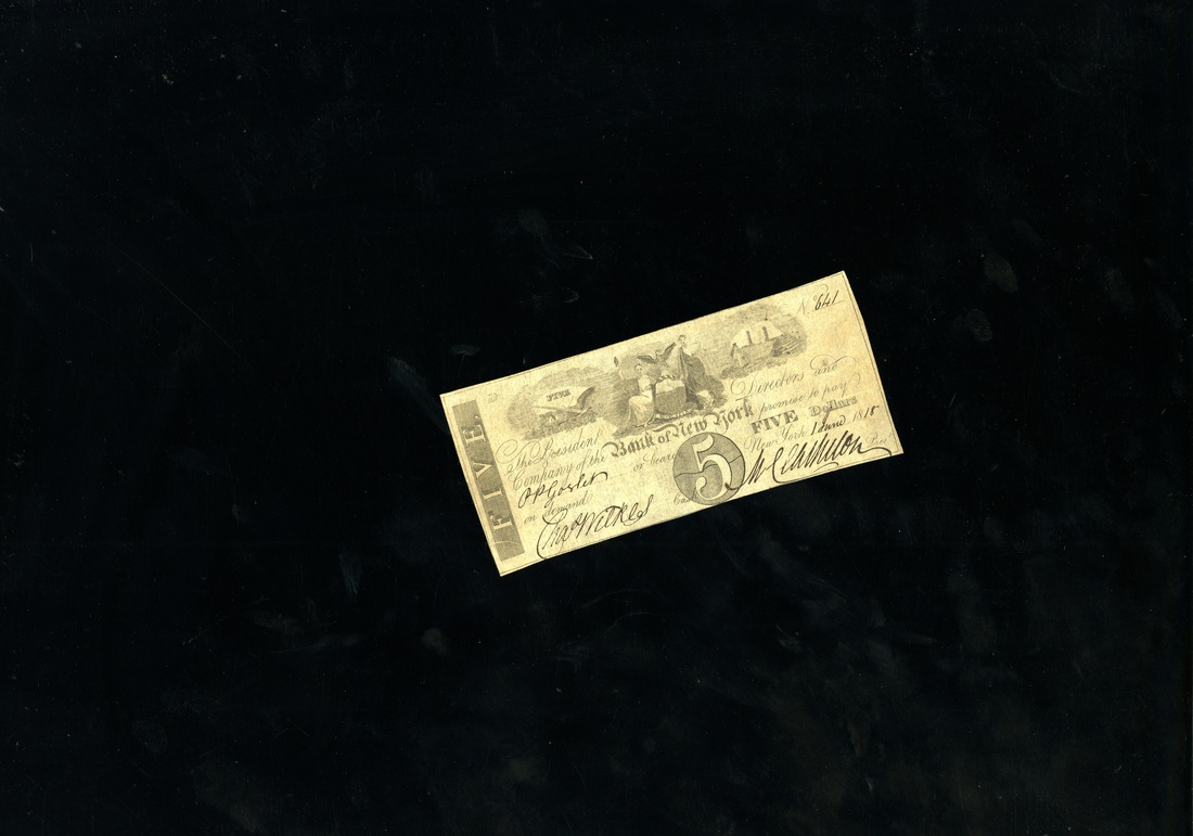 New York. Bank of New York. $5. 1818. (C82) No.641. Liberty & Justice flank New York state arms. Fine. From the Collection of John Herzog.
