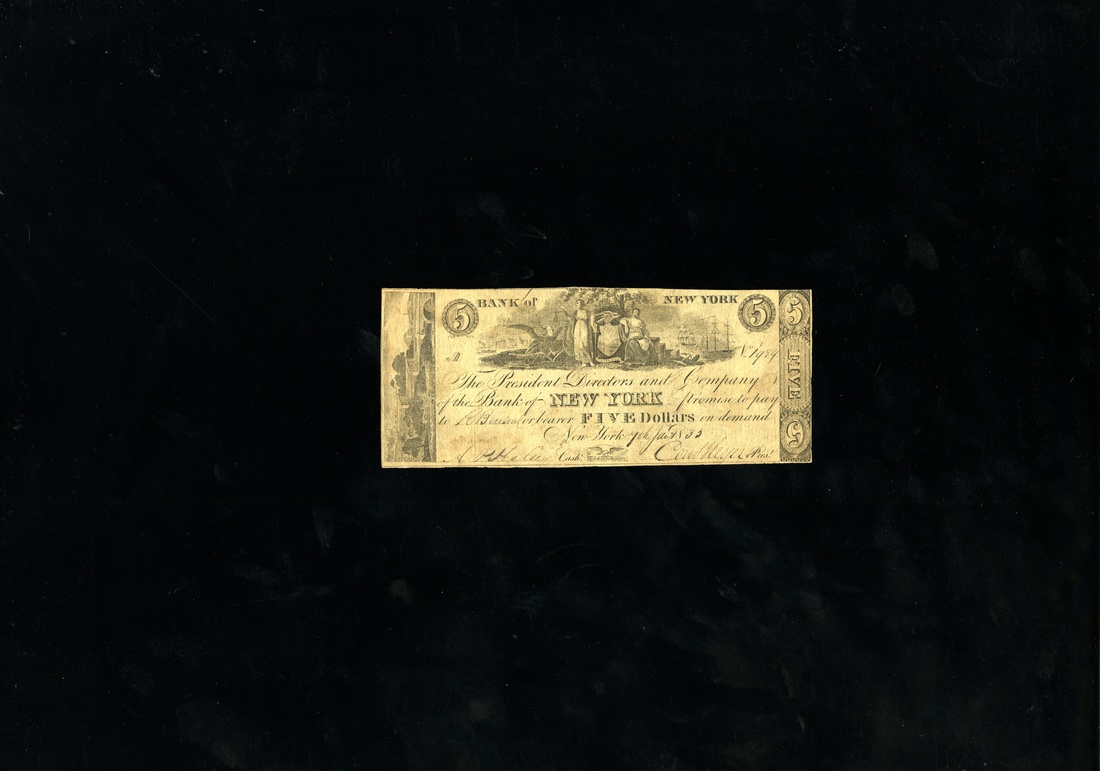 New York. Bank of New York. $5. 1835. (C162) No.1989. Liberty & Justice flank New York state arms. Fine. From the Collection of John Herzog.