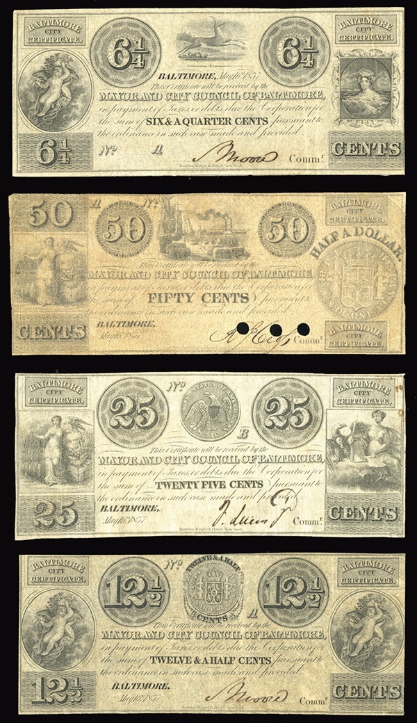 Maryland. Baltimore. Russel Reynolds. 12 1/2 Cents. June 1, 1840. (5.140.2) No.12. Small tree near the center. "S. SANDS, Printer" in the left end panel. R-7. Very Fine.