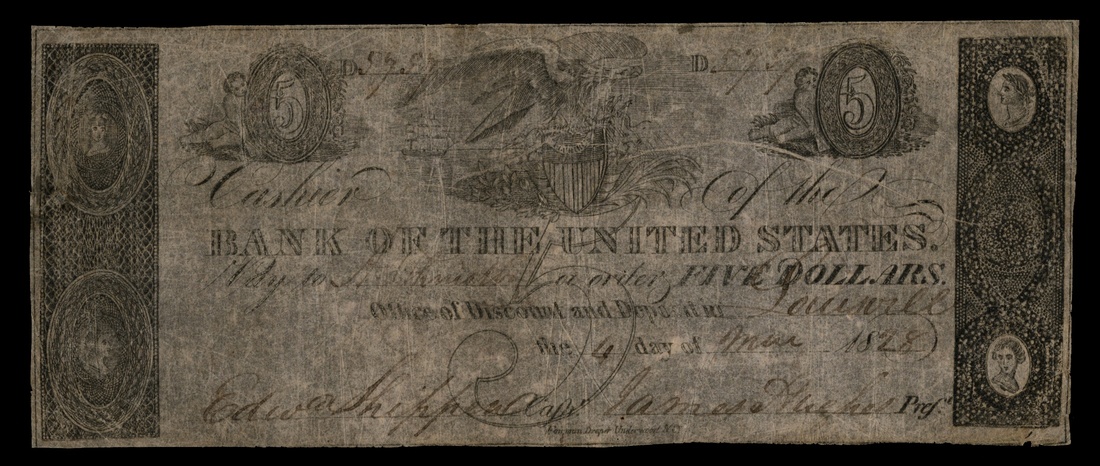 Bank of the United States. Louisville branch. $5. 1828. (C412) No.5757. Eagle stands on shield. Fine-VF.