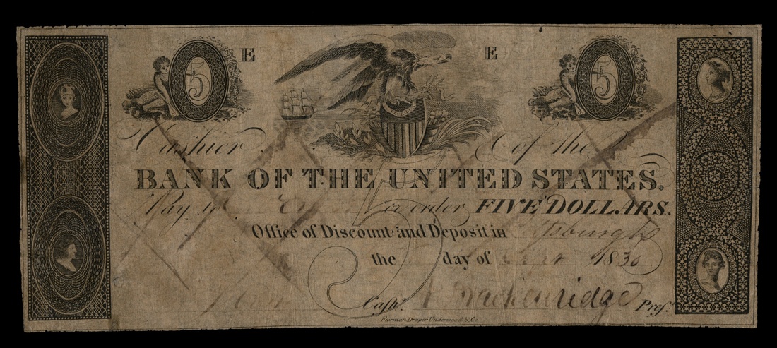 Bank of the United States. Pittsburgh branch. $5. 1830. (C708) Eagle stands on shield. Fine.