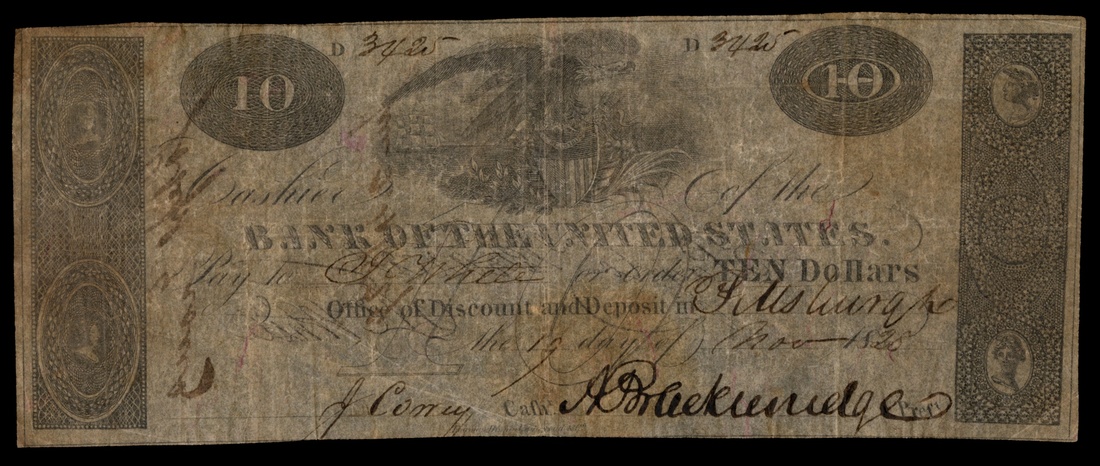 Bank of the United States. Pittsburgh branch. $10. 1830. (C714) No.3425. Eagle stands on shield. F-VF.